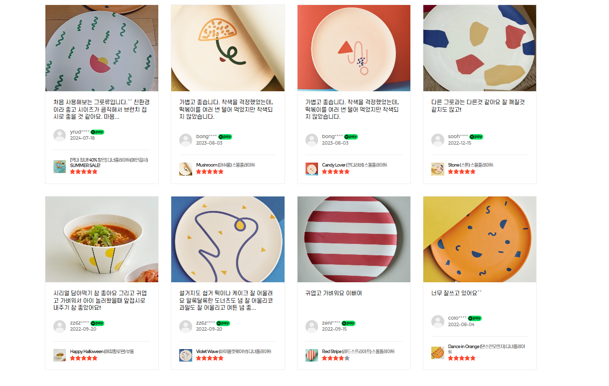앞접시 6종, 보울 1종, 큰접시 6종 (품절 상품 제외)